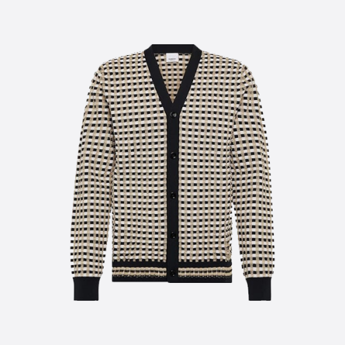 버버리 블랙 앤 화이트 플레드 V넥 니트 스웨터 카디건 > ★ Outer