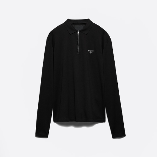 프라다 트라이앵글 로고 하프 지퍼 긴팔 티셔츠 > ★ Top