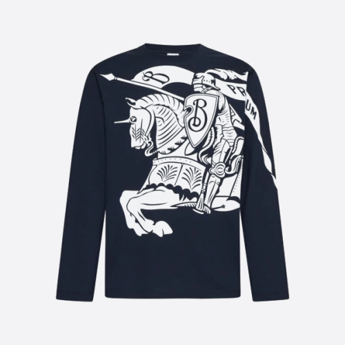버버리 호스 프린트 긴팔 티셔츠, 네이비 블루 > ★ Top