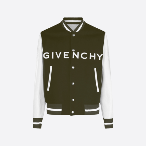 지방시 자수 레터링 가죽 소매 패치워크 울 베이스볼 재킷 > ★ Outer