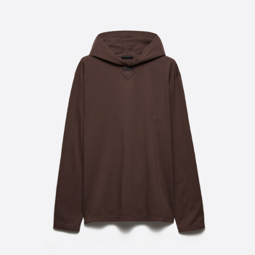 프라다 칼라 라벨 코튼 루즈핏 후드 스웨트셔츠 > ★ Top