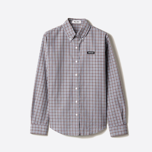 미우미우 갈색과 파란색 체크무늬 긴팔 셔츠 > ★ Top