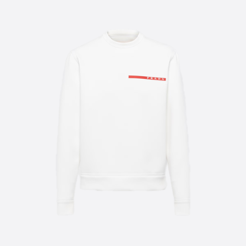 프라다의 미니멀한 디자인의 긴팔 티셔츠로, 가슴 부분에 자수 레터링이 새겨져 있습니다. > ★ Top