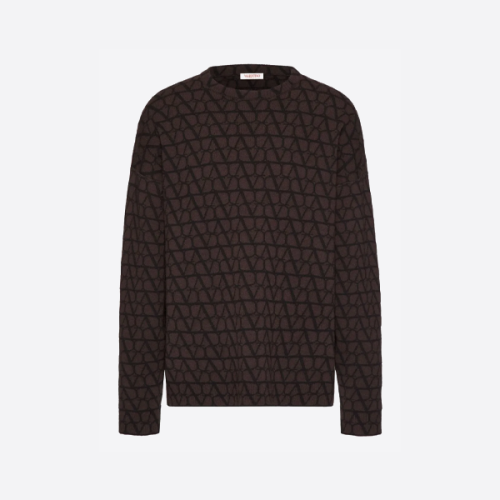 발렌티노 V 로고 자카드 크루넥 스웨터, 브라운 > ★ Top