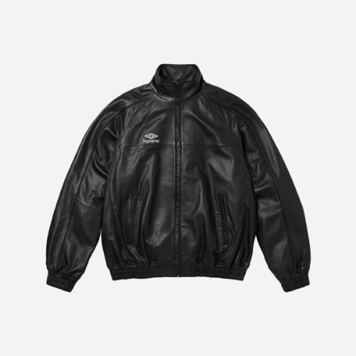 슈프림과 엄브로의 협업 자수 로고 지퍼 가죽 재킷, 블랙 > ★ Outer