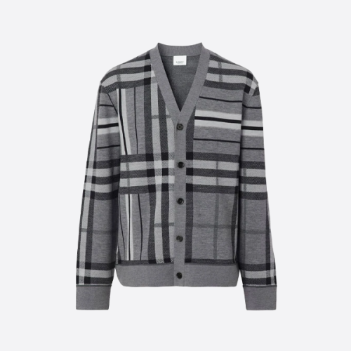 버버리 두꺼운 체크무늬 스트라이프 니트 가디건 스웨터 > ★ Outer