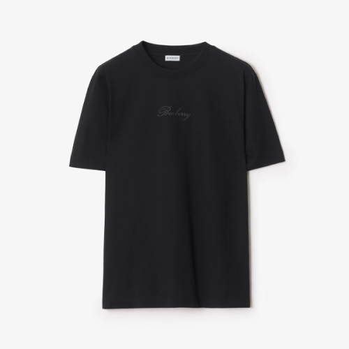 버버리 체크 자수 크루넥 반팔 블랙 탑 > ★ Top