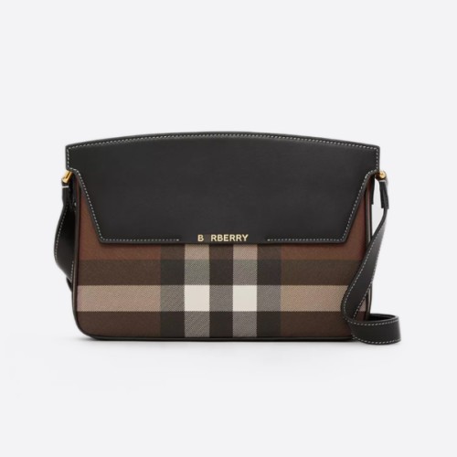버버리 체크 & 레더 캐서린 숄더백 다크 버치 브라운 80611301 > ★ Bags