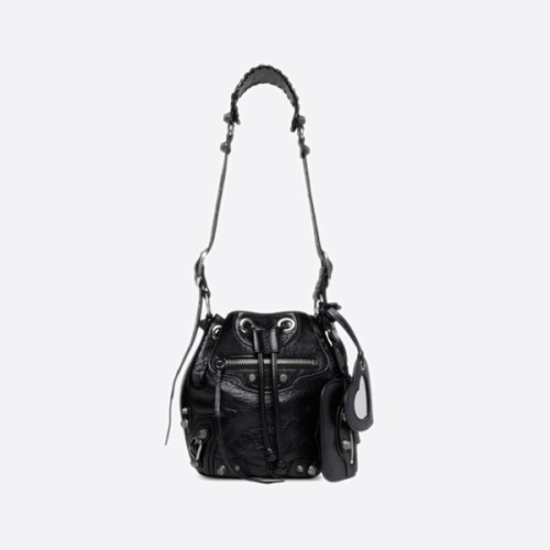 발렌시아가 르 카골 XS 버킷백 블랙 아레나 램스킨 & 에이지드 실버 하드웨어 7024311VG9Y1000 > ★ Bags