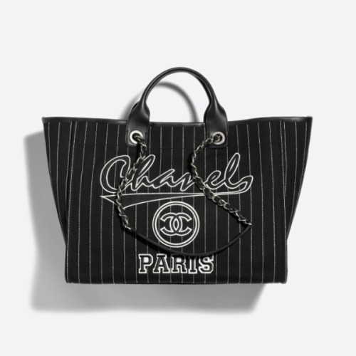샤넬 라지 쇼핑백 코튼, 카프스킨 & 실버톤 메탈 블랙 화이트 A66941 B10404 NN102 > ★ Bags