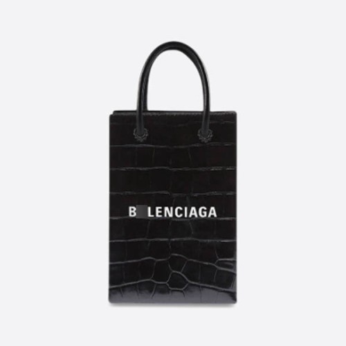 발렌시아가 블랙 샤이니 크로커다일 엠보시드 카프스킨 Shopping Phone Holder 5938261U61N1090 > ★ Bags