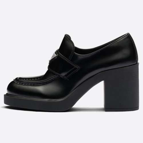 프라다 블랙 초콜렛 하이 힐 브러시드 레더 로퍼 1D246M_055_F0002_F_085 > ★ Leather shoes/boots