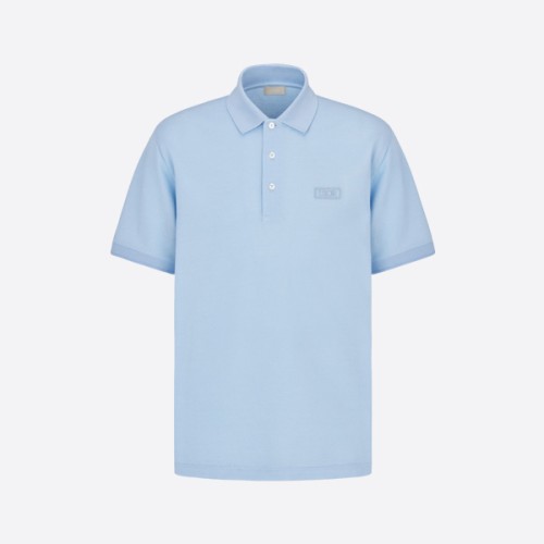 디올 아이콘 폴로 셔츠 블루 코튼 & 실크 피케 > ★ Top