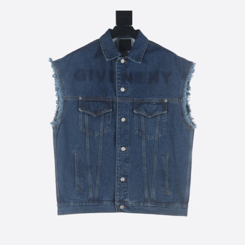 지방시 블루 디스트레스드 로고 데님 질레 > ★ Outer