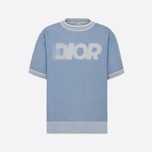 디올 이탈릭 티셔츠 블루 코튼 블렌드 트라마토 니트 > ★ Top