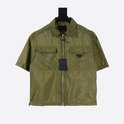 프라다 밀리터리 그린 쇼트 슬리브 라이트 리나일론 셔츠 > ★ Outer