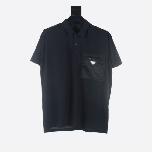 프라다 리나일론 디테일 네이비 스트레치 코튼 폴로 셔츠 > ★ Top