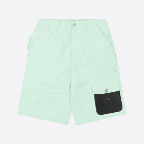 디올 X 스톤 아일랜드 코튼 블렌드 사틴 버뮤다 쇼트 라이트 그린 > ★ Pants