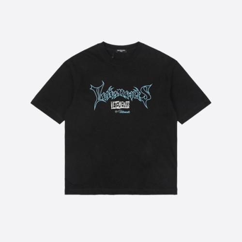 발렌시아가 블루 그래피티 레터 프린트 쇼트 슬리브 블랙 > ★ Top