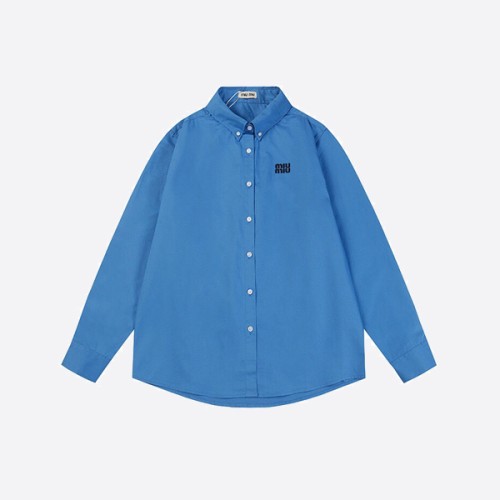 미우미우 엠브로이더리 로고 온 체스트 블루 셔츠 > ★ Top