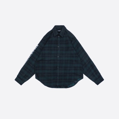 발렌시아가 블러리 레터 다크 그린 플레이드 롱슬리브 셔츠 > ★ Top