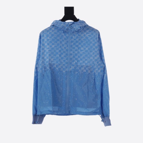 루이비통 에어플레인 그라디언트 레터링 프린트 후드 집업 자켓 블루 > ★ Top