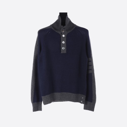 톰 브라운 네이비 & 그레이 컬러블락 울 라펠 스웨터 > ★ Top