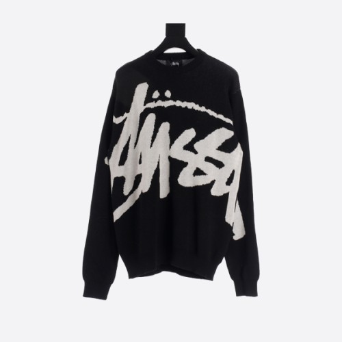 스투시 라지 로고 레터 패턴 자카드 니트 크루넥 스웨터 블랙 > ★ Outer