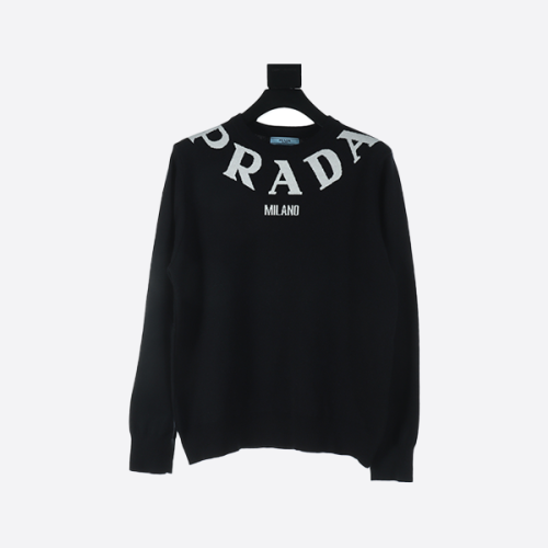 프라다 체스트 네크리스 레터 보더 3-디멘셔널 자카드 스웨터 > ★ Top