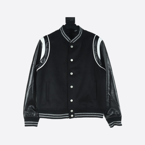 지방시 인디안 레더 슬리브 실크 비드 울 베이스볼 자켓 > ★ Outer
