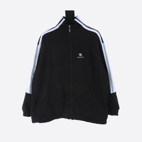 발렌시아가 24FW 스포티 B 더블 훅 자수 스트라이프 스플리싱 폴라 플리스 코튼 자켓 > ★ Outer