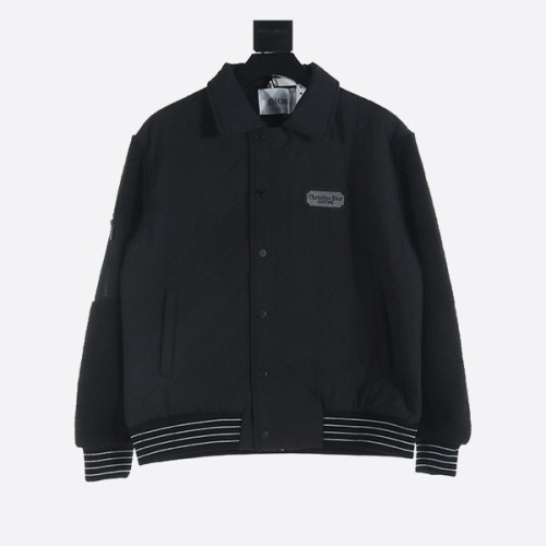 디올 램 울 패치워크 베이스볼 자켓 블랙 > ★ Outer