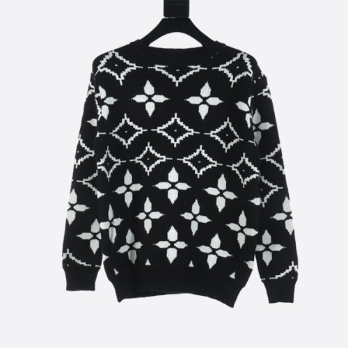 루이비통 올드 플라워 풀 프린트 더블 라인 자카드 라운드 넥 스웨터 > ★ Top