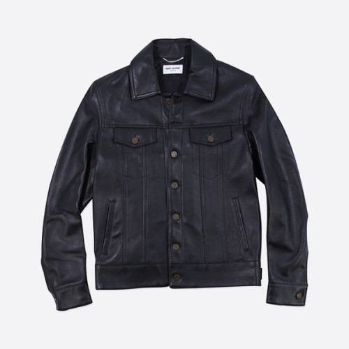 생 로랑 블랙 스무스 레더 데님 스타일 버튼 자켓 > ★ Outer