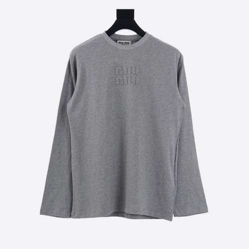 미우미우 자수 로고 코튼 티셔츠 그레이 > ★ Top