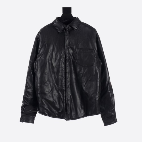 발렌시아가 버튼 다운 컬러 패딩 레더 오버셔츠 블랙 > ★ Outer