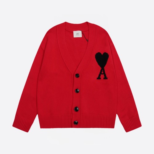 아미 파리스 빅 하트 로고 니트 가디건 레드/블랙 > ★ Outer