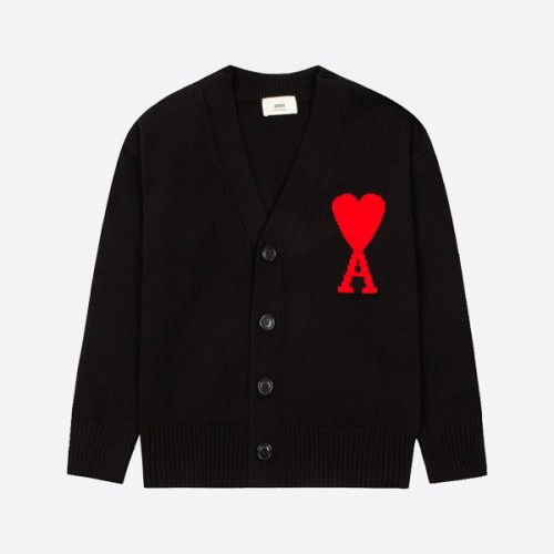 아미 파리스 빅 하트 로고 니트 가디건 블랙/레드 > ★ Outer