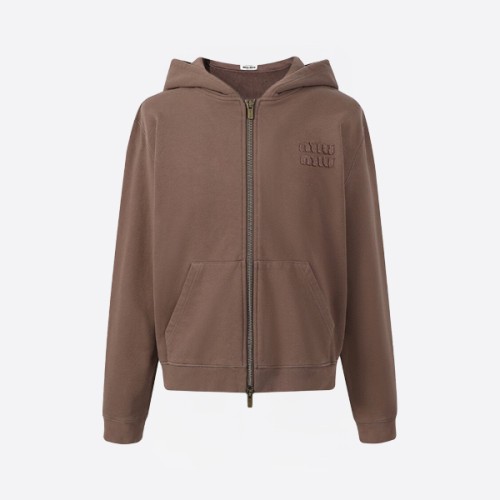 미우미우 가먼트 바이 코튼 플리스 후드 다크 브라운 > ★ Outer
