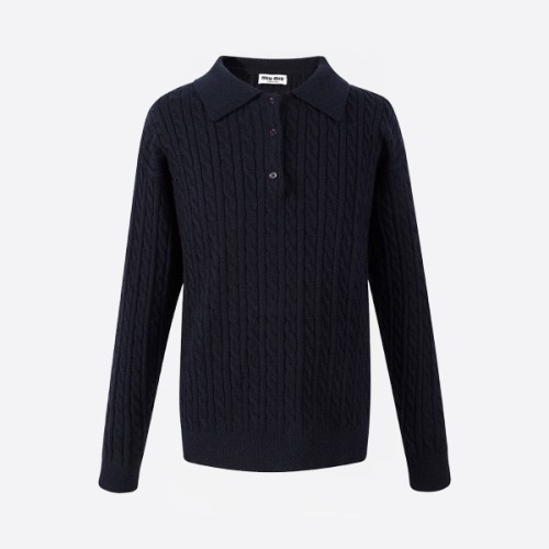 미우미우 네이비 캐시미어 니트 폴로 셔츠 > ★ Top