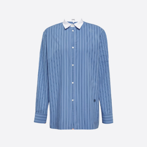로에베 화이트 칼라 스트라이프 싱글브레스트 피크 칼라 긴팔 셔츠 > ☆ Top