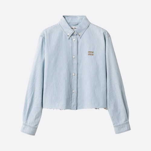 미우미우 크롭 스트라이프 코튼 팝린 셔츠 > ☆ Outer