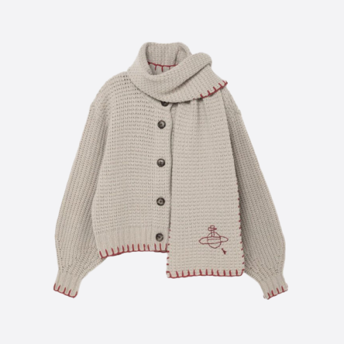 비비안 웨스트우드 스카프 부착 울 카디건 베이지 > ☆ Outer