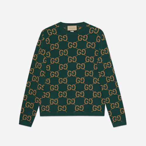 구찌 자카드 풀오버 니트 스웨터, 녹색. > ★ Top