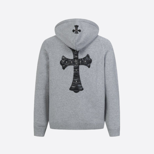 크롬하츠 패치 가죽 라벨 니트 후드 스웨터 가디건 > ★ Top