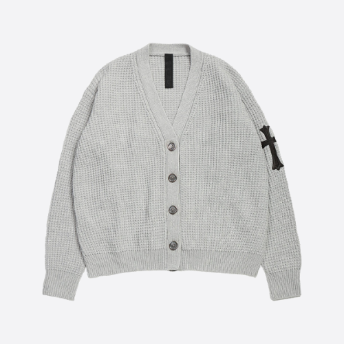 크롬 하츠 슬리브 레더 크로스 와플 니트 캐시미어 가디건 (그레이) > ★ Outer