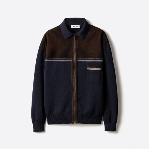 미우미우 칼라 가죽 패치워크 니트 가디건 > ★ Top