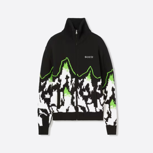 구찌 스키 테마 산 풍경 꽃무늬 하이넥 니트 지퍼업 재킷 > ★ Outer