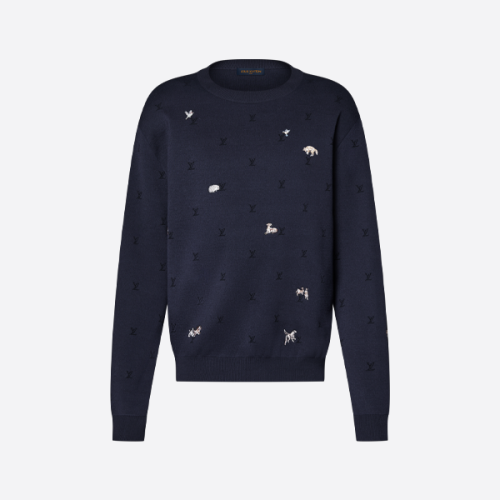 루이비통 애니멀 자수 울 크루넥 스웨터 > ★ Top
