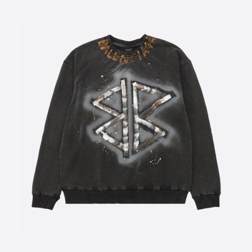 발렌시아가 워싱 처리된 핸드페인팅 레터 크루넥 스웨트셔츠 > ★ Top